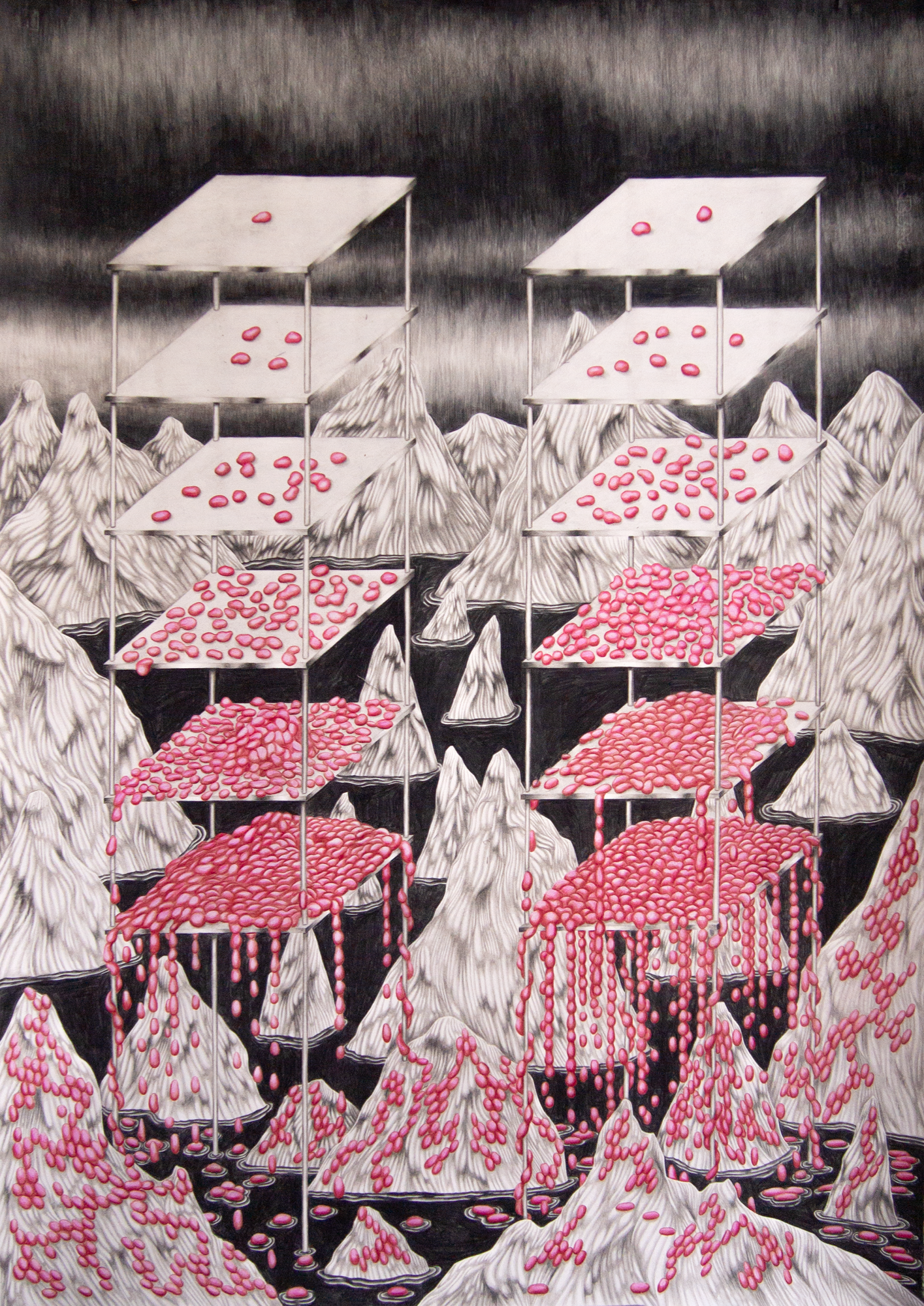 En dialogue avec les textes de la biologiste Lynn Margulis, qui a mis en lumière le rôle central de la symbiose au cours de l'évolution, je tente de rendre visible, à partir d'outils plastiques, ces récits d'entrelacements, d'amalgames, d'intrications entre les bestioles sur Terra. Pour incarner ces devenir-avec, je propose des images-récits qui font cohabiter plusieurs registres, qui mêlent le savoir et la poésie, les faits et l'imaginaire. Des images pour comprendre, pour rêver, pour s'y sentir impliqué, pour s'y mêler. Des images pour nos corps aux contours flous. Des images gluantes, volatiles, troubles. Des images qui font surgir des mondes imperceptibles la réalité, étrange et onirique, des connexions intimes qui régissent le monde vivant.