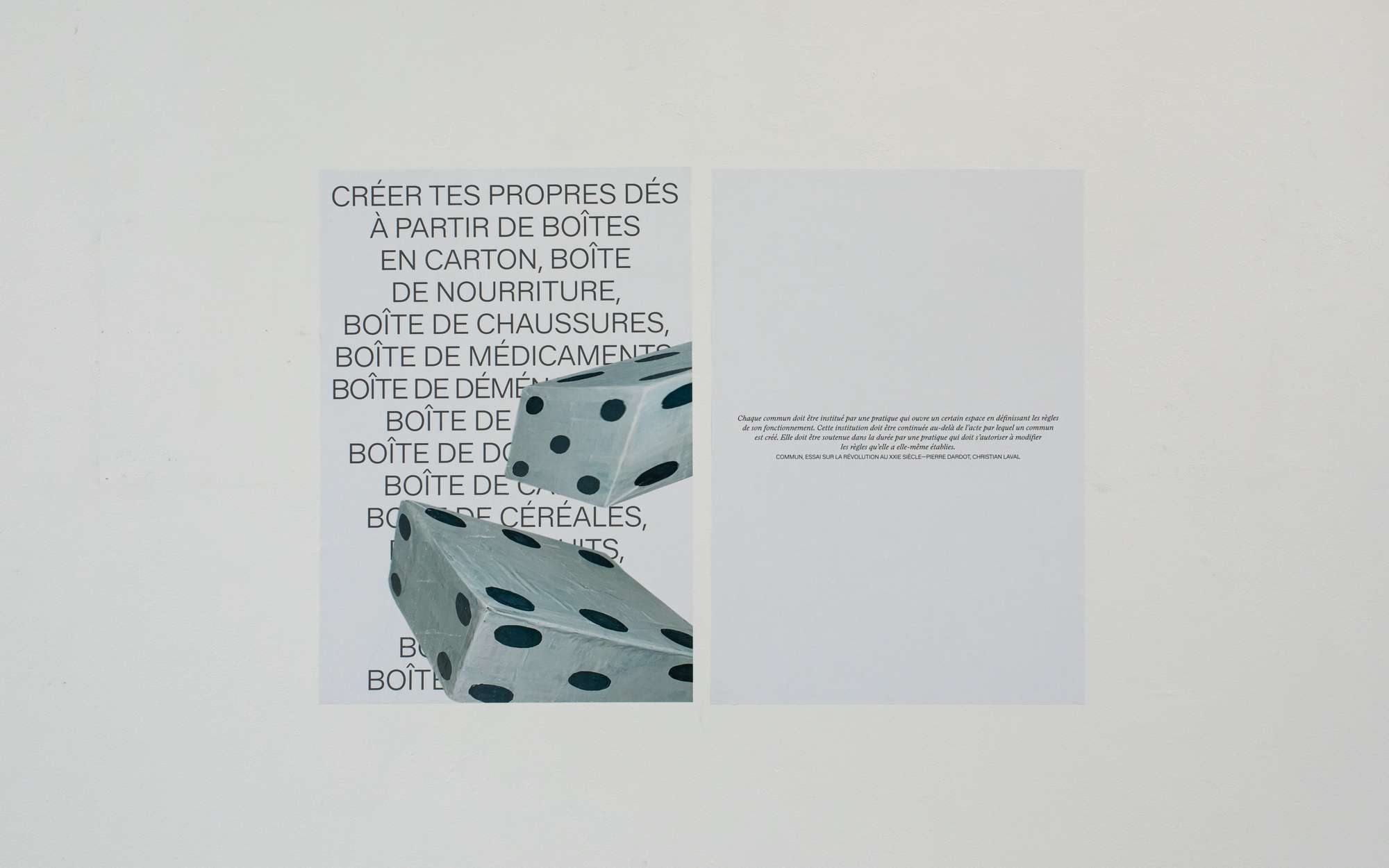 À partir d’un stage de plusieurs mois au sein du collectif Gilbard et d’un mémoire consacré aux communs, ce projet explore comment créer du lien et du commun à travers le jeu. En proposant des ateliers, des tournois et des interventions dans l’espace public, le jeu devient un outil de redéfinition des relations entre les individus, mais aussi avec les espaces qu’ils habitent, transformés temporairement en terrains de jeu.