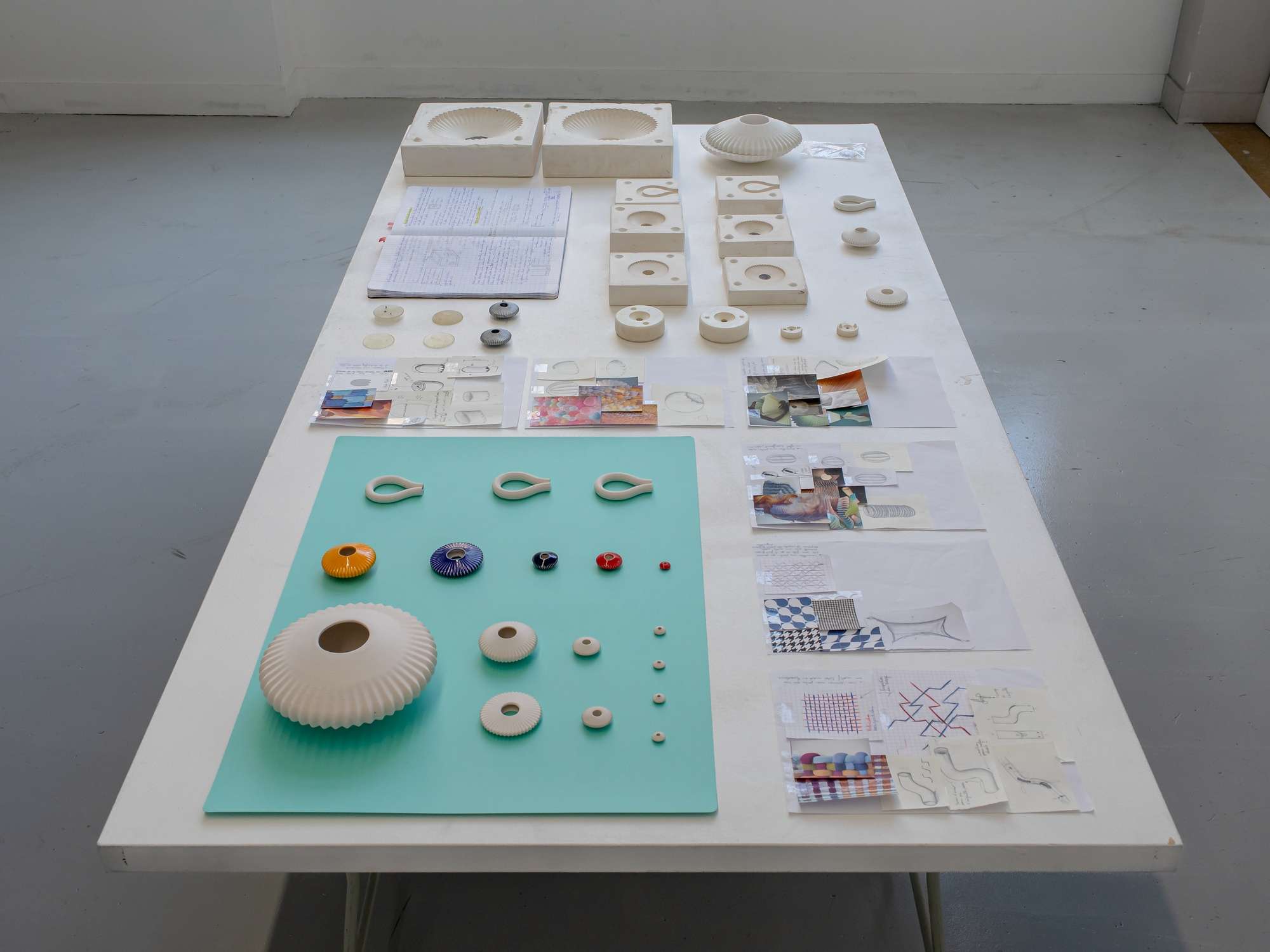 Le Perlier est une recherche autour de la perle comme objet de conception, de dialogue et d’innovation dans le champ textile. Le projet vise à développer un savoir-faire sur mesure, à la croisée du design, de l’artisanat et de la création expérimentale. Loin de l’ornement passif, la perle devient ici un outil fonctionnel, capable de structurer un geste, un rythme, une matière. Une méthode rigoureuse d’archivage et de classification permet de poser les bases d’un langage formel et technique. Chaque perle est pensée en réponse à un usage textile réel, et conçue en dialogue avec des artisanes. Trois collaborations — avec une tisserande, une brodeuse et une spécialiste du nœud — servent de terrain d’application. Le projet mêle matériaux variés (céramique, résine, métal, textile) et outils numériques pour concevoir des perles uniques et reproductibles. Le Perlier n’est pas une collection d’objets, mais la construction d'un nouveau savoir-faire, un système ouvert, vivant, en constante évolution. C’est une proposition de design engagée, enracinée dans le réel, tournée vers et au service de l'artisanat.