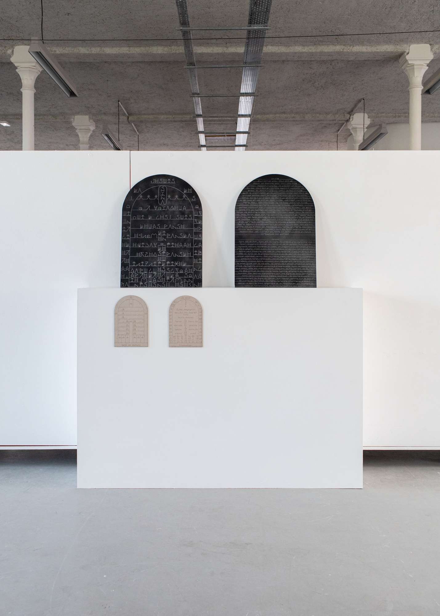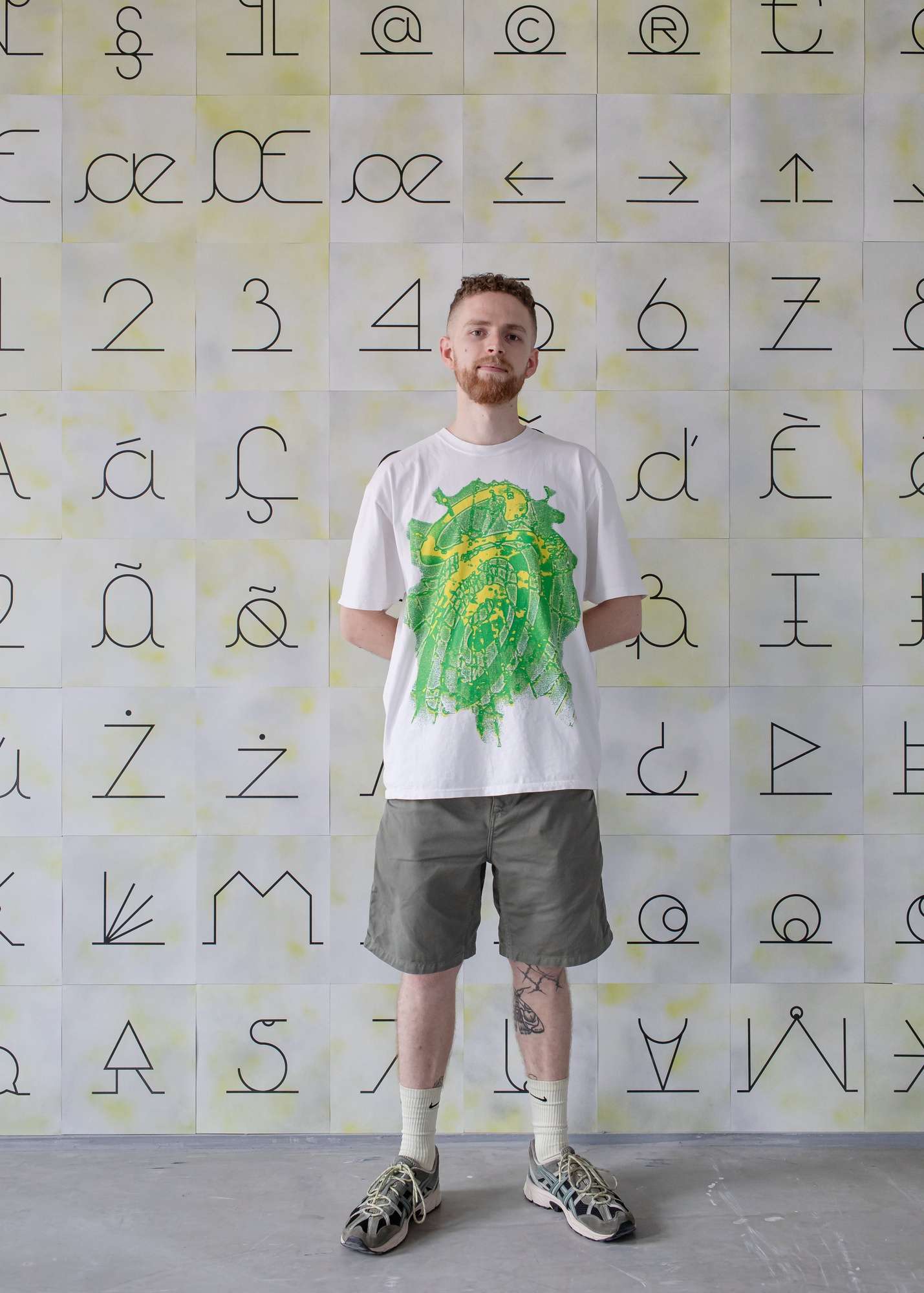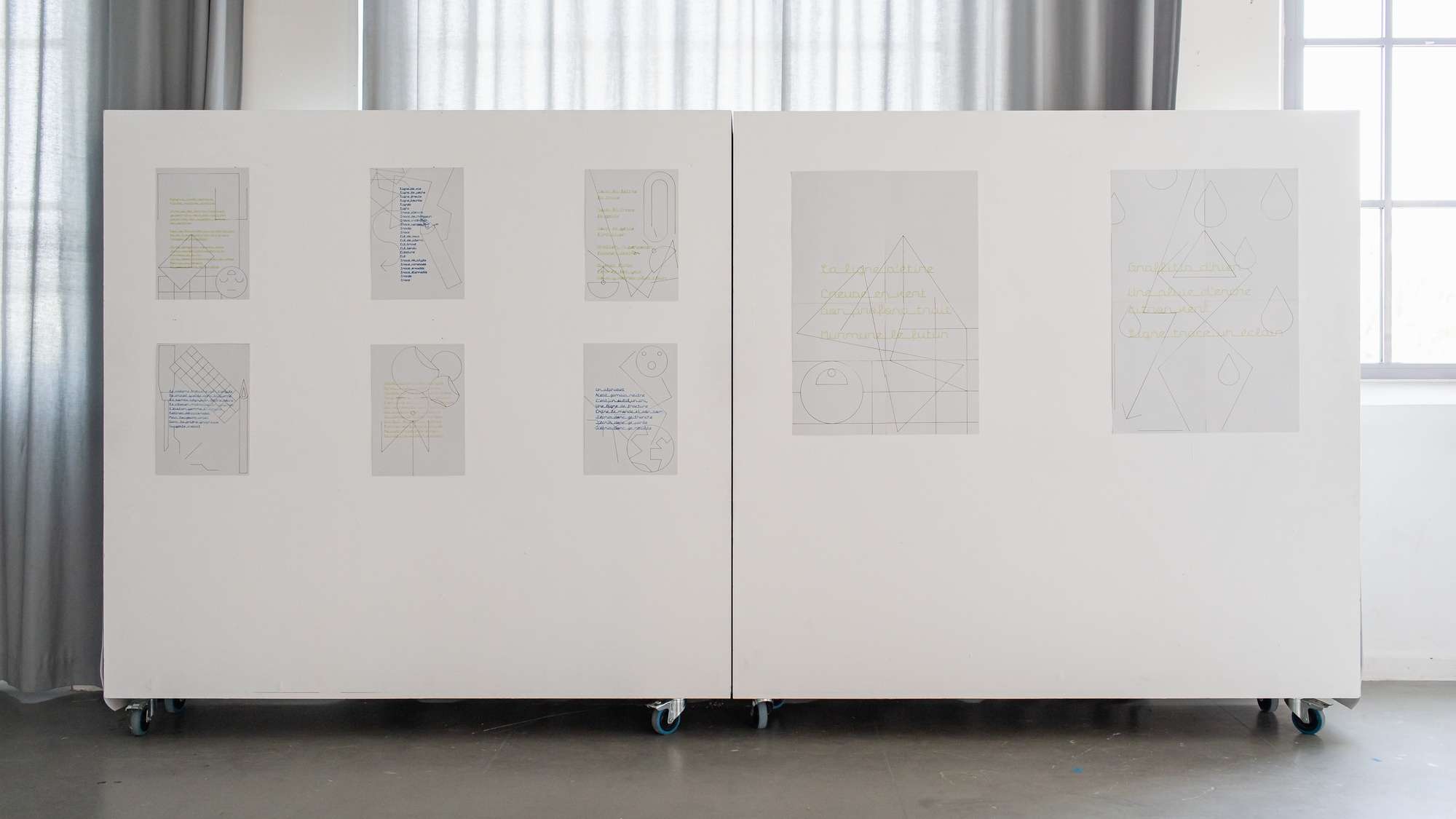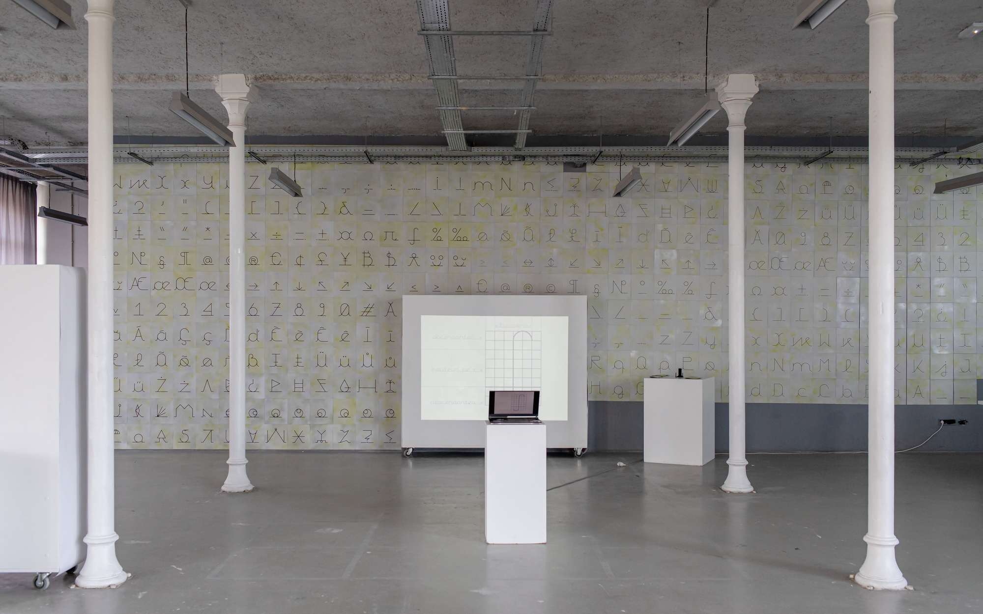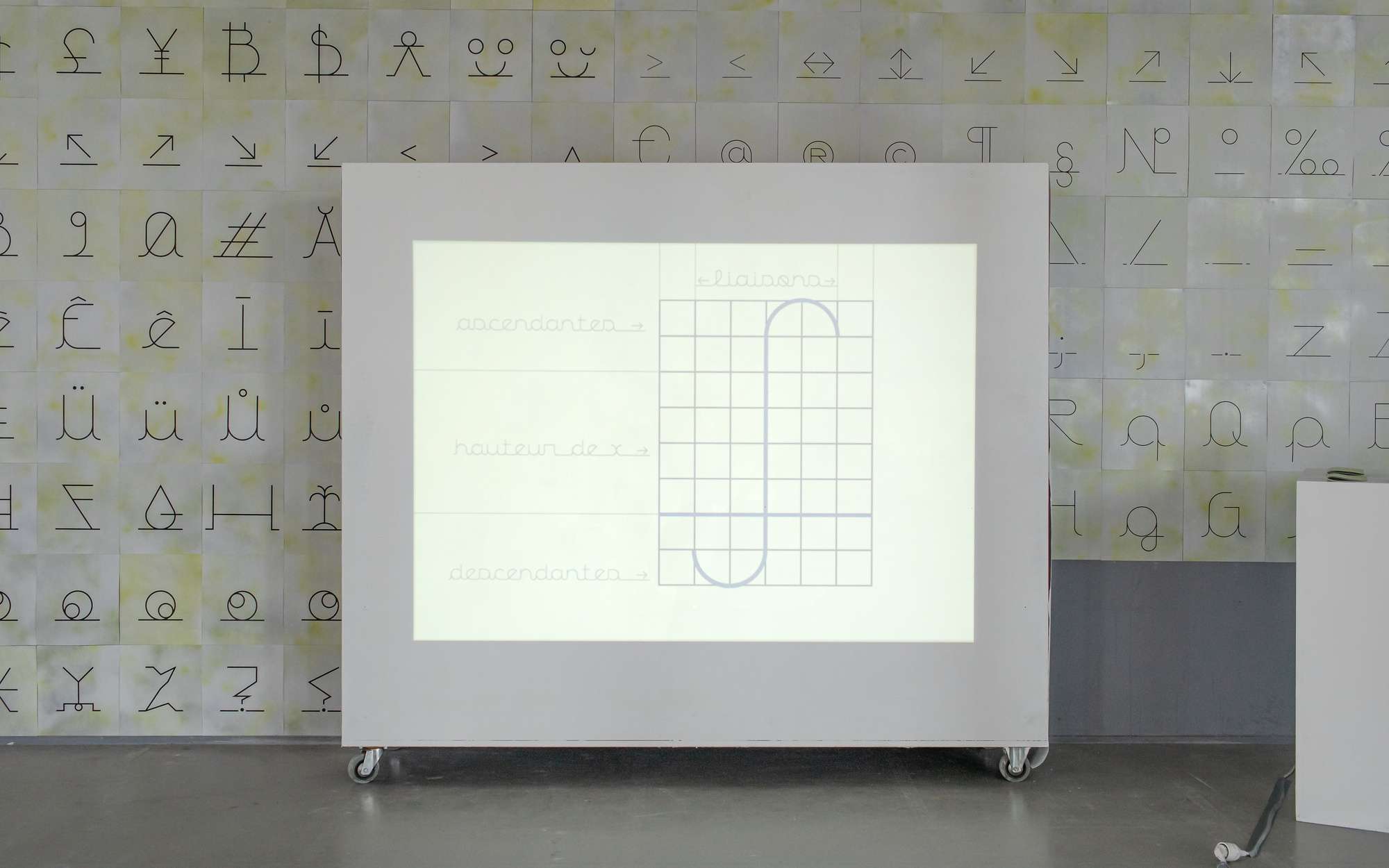 Elle transpose le tracé de l’élève appliqué en lui imposant la contrainte de devenir géométrique. Cette police se dessine d’un seul trait, elle est monolinéaire, chaque signe se reliant à l’autre par une ligne de base commune. C’est un lien entre analogique et digital, un ancrage dans la tradition calli-typographique. L’écriture manuscrite nous permet de voir la lettre, à l’égal des anciens calligraphes, comme la projection de nos propres corps.