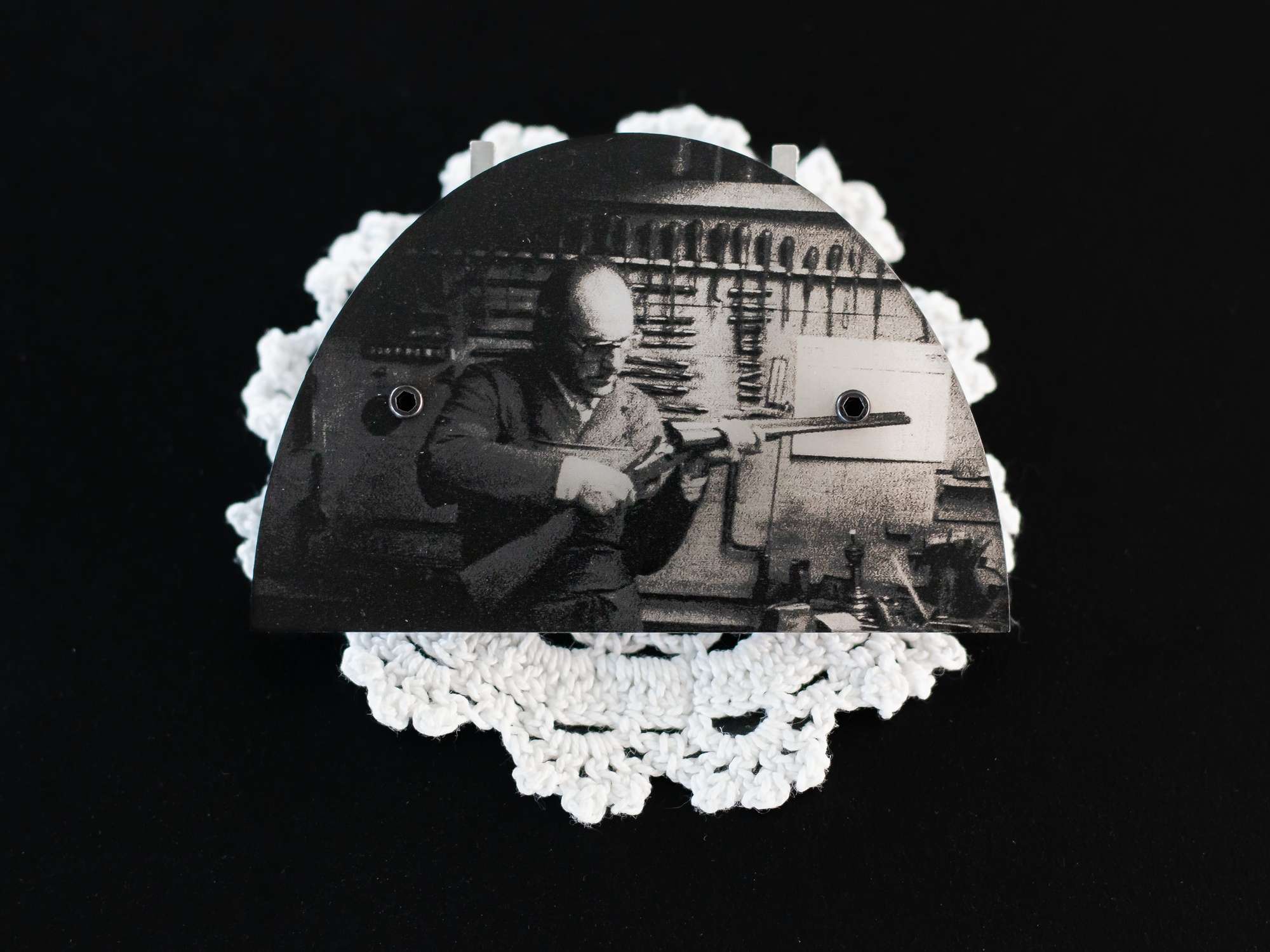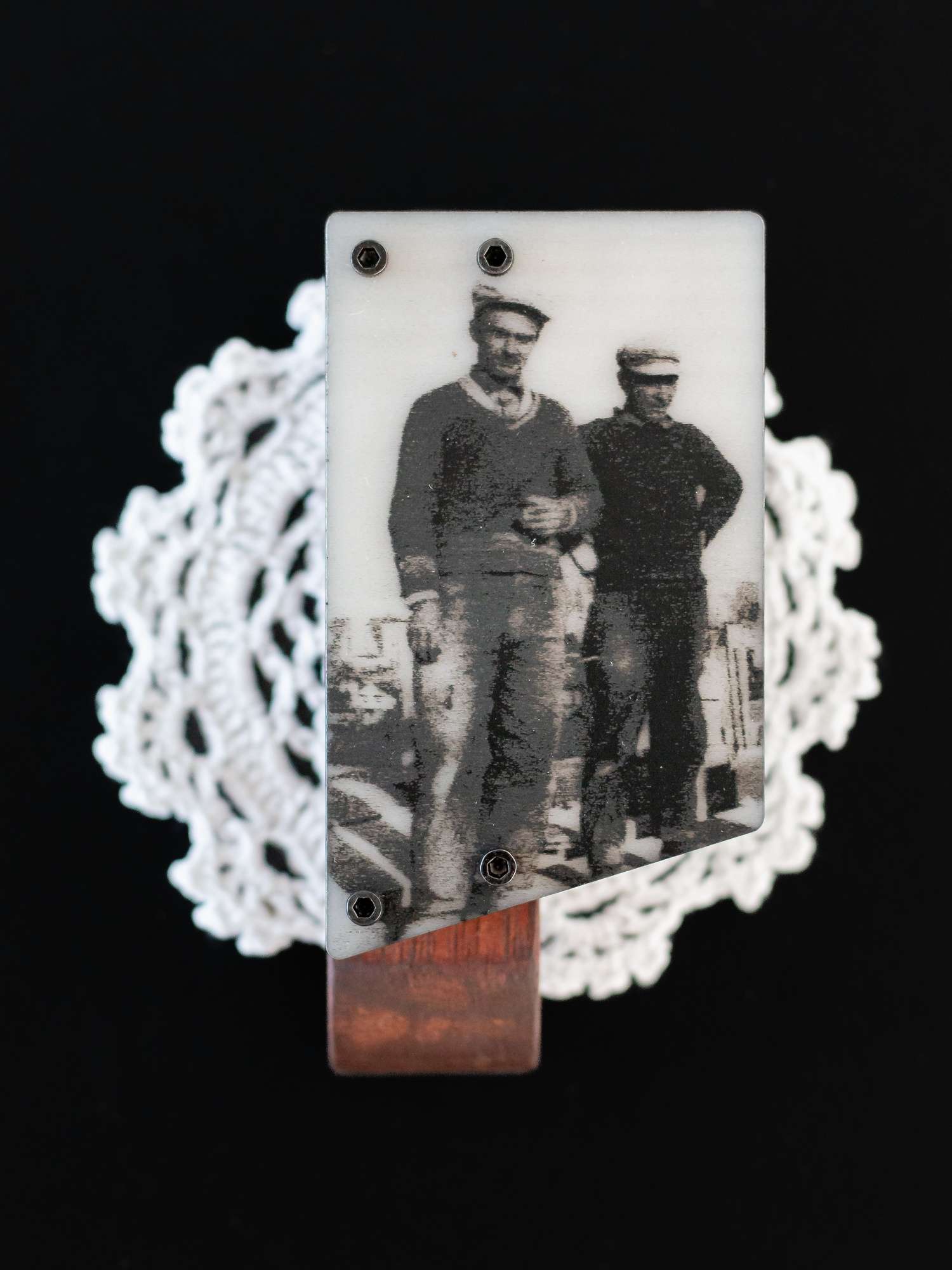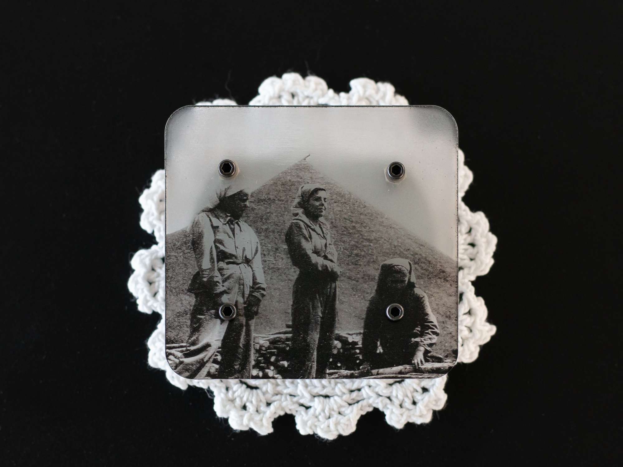 Mon projet met en scène des broches composées de photos d’archives et de matériaux récupérés au gré des errances et des explorations. Ces bijoux racontent des fragments de mémoire et d’histoire populaire. Le projet tisse un lien entre Saint-Étienne et Argenteuil, deux villes ouvrières et populaires. Il interroge la notion de trace et de territoire à travers des objets intimes et portables. Les broches deviennent des supports de récit et de transmission.