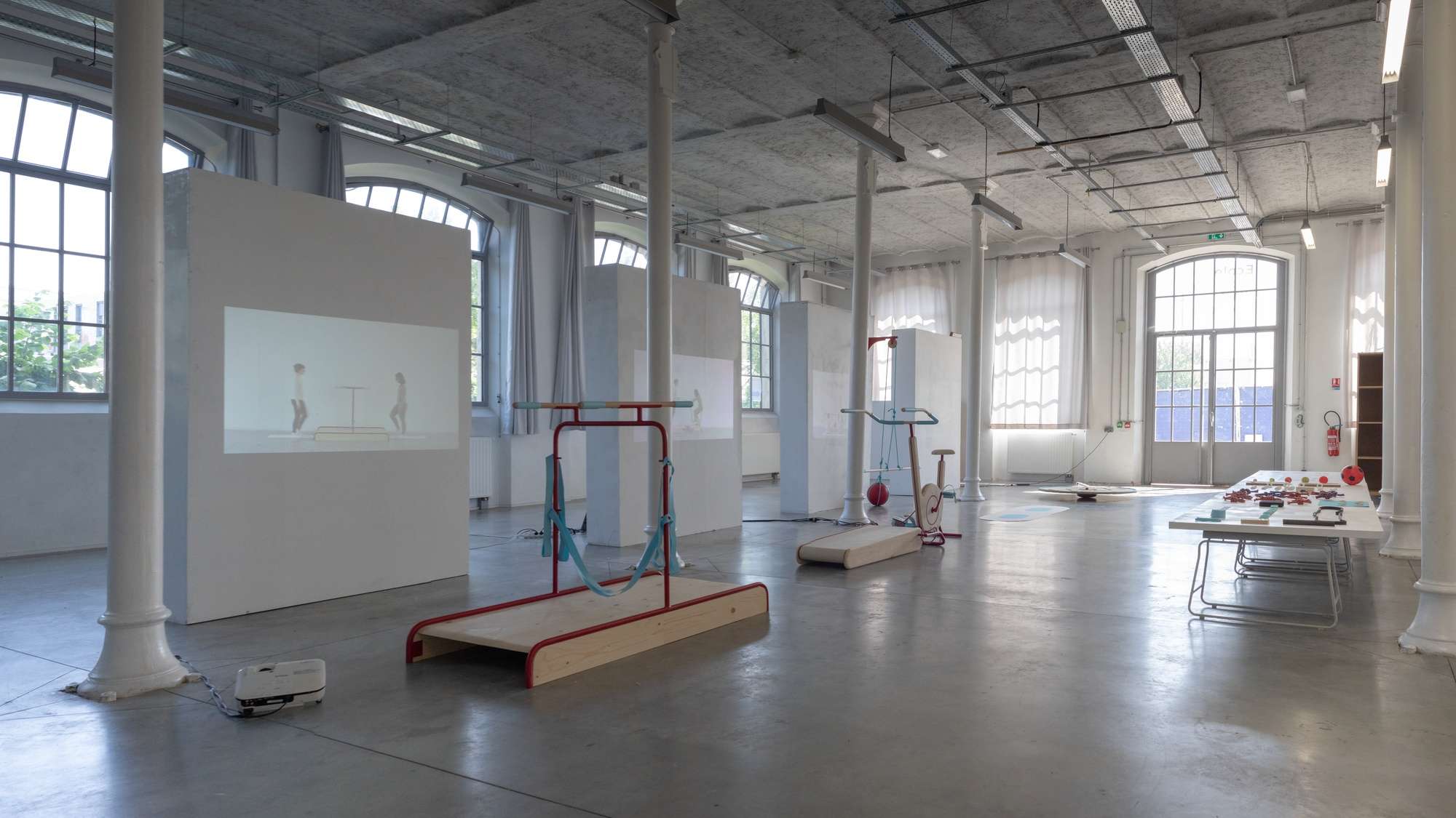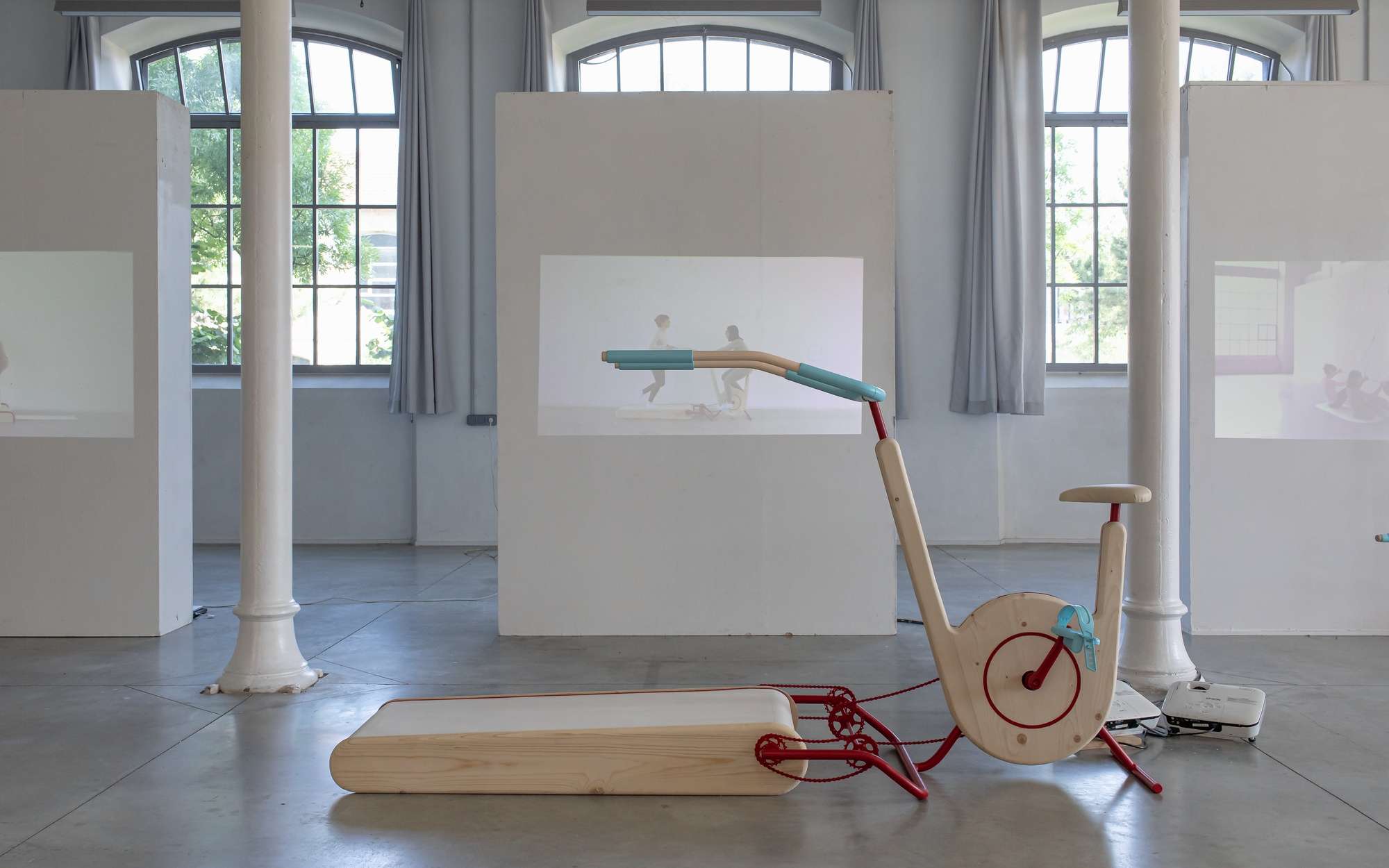Inspirés des machines de la salle de sport, les quatre dispositifs invitent à la coordination, à l’écoute et au lien.