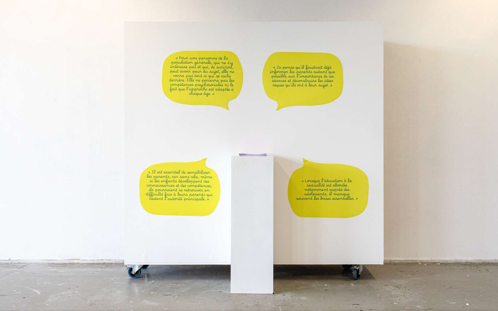 Mon projet de diplôme est issu de mon mémoire sur l’importance d’une éducation à la sexualité dès le plus jeune âge. Une enquête menée auprès de professionnel·les de santé (sexologues, psychologues, associations) a révélé que les représentations des adultes freinent souvent sa mise en place.