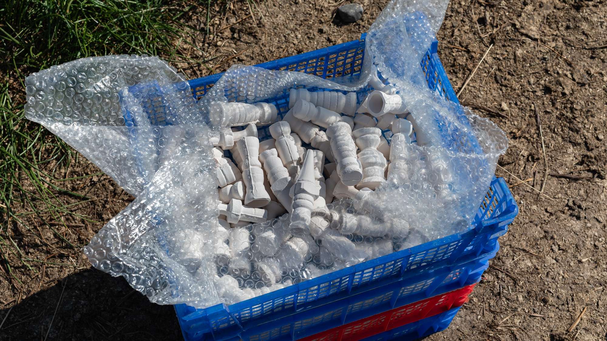 Certaines de mes sculptures sont posées sur les sièges d’une voiture, d’autres, plus petites, attendent dans des cagettes qu’on les emporte, tandis que quelques-unes servent de mangeoires dans un champ.