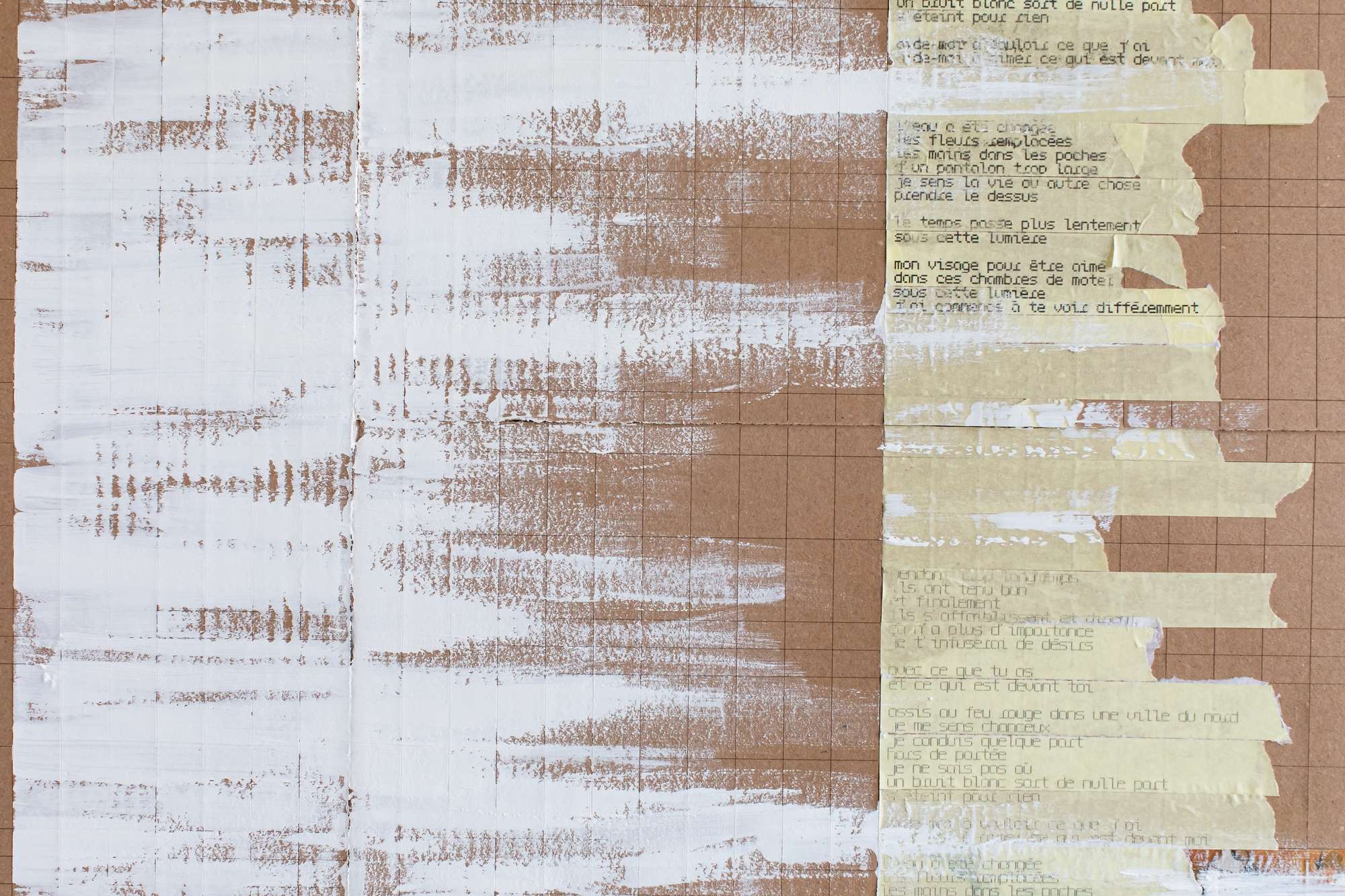 Ce projet de diplôme se présente comme un laboratoire qui pose la question de la typographie dans la poésie. Il définit et me permet d’adopter une position hybride à l'intersection de ces deux disciplines. Le projet suit un processus. Il est construit comme une succession d'étapes qui raconte des passages depuis des formes typographiques. Le passage d’une série de points sur une ligne vers un caractère typographique vectoriel. Le passage de ce même caractère vers un mot, une strophe, un poème. Le passage d’un bras robot qui répète le même motif inlassablement. Celui d’une ligne sur le sol.