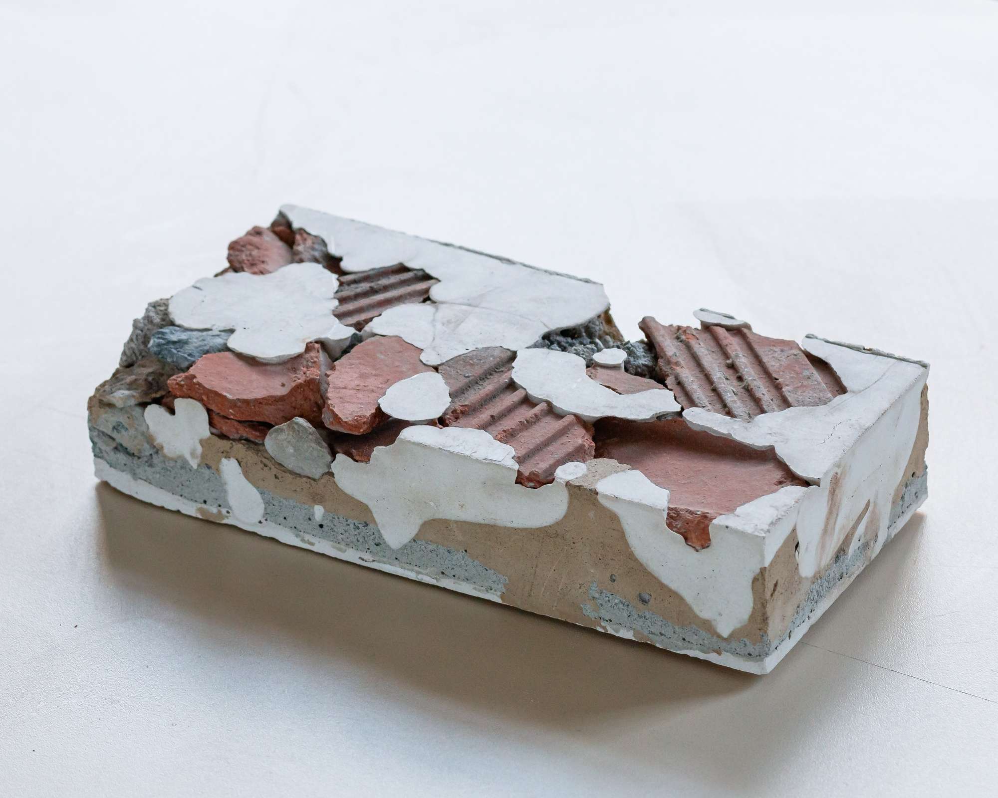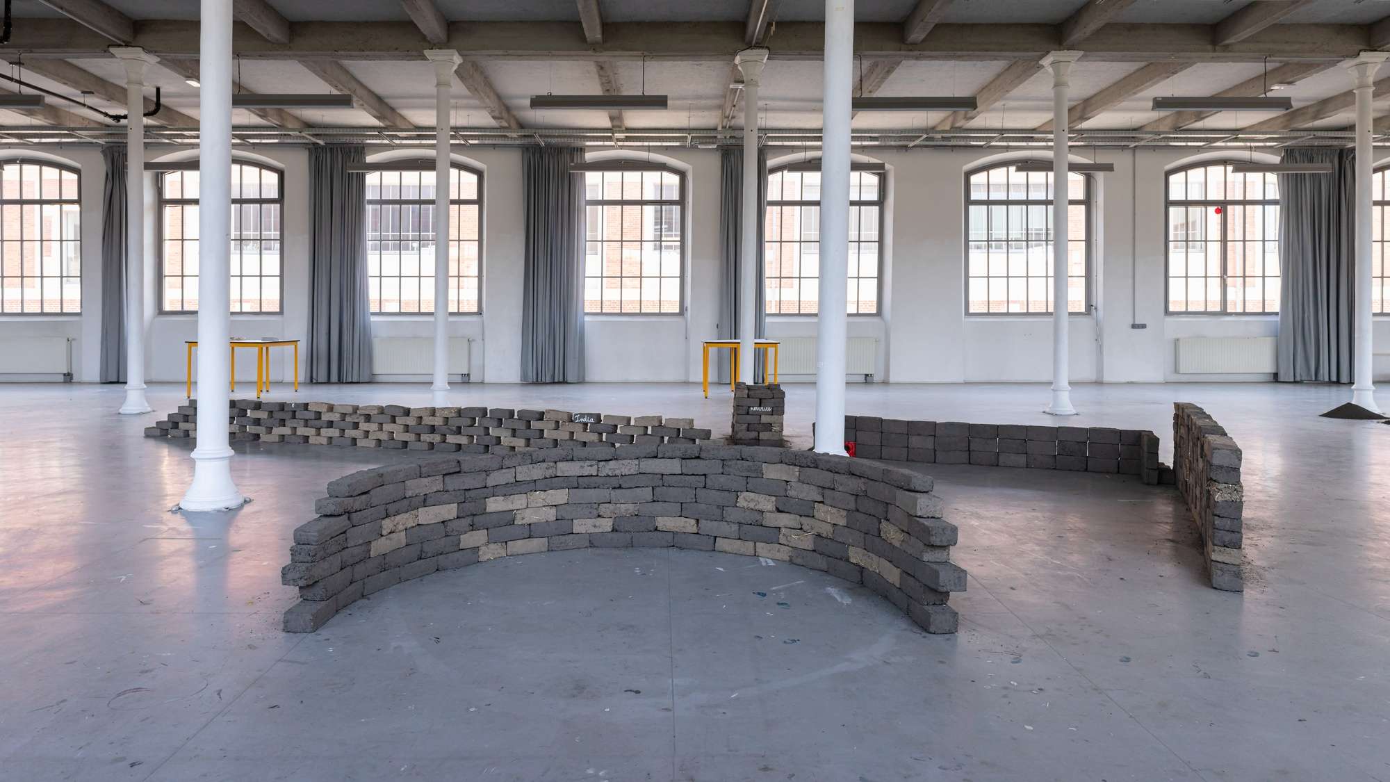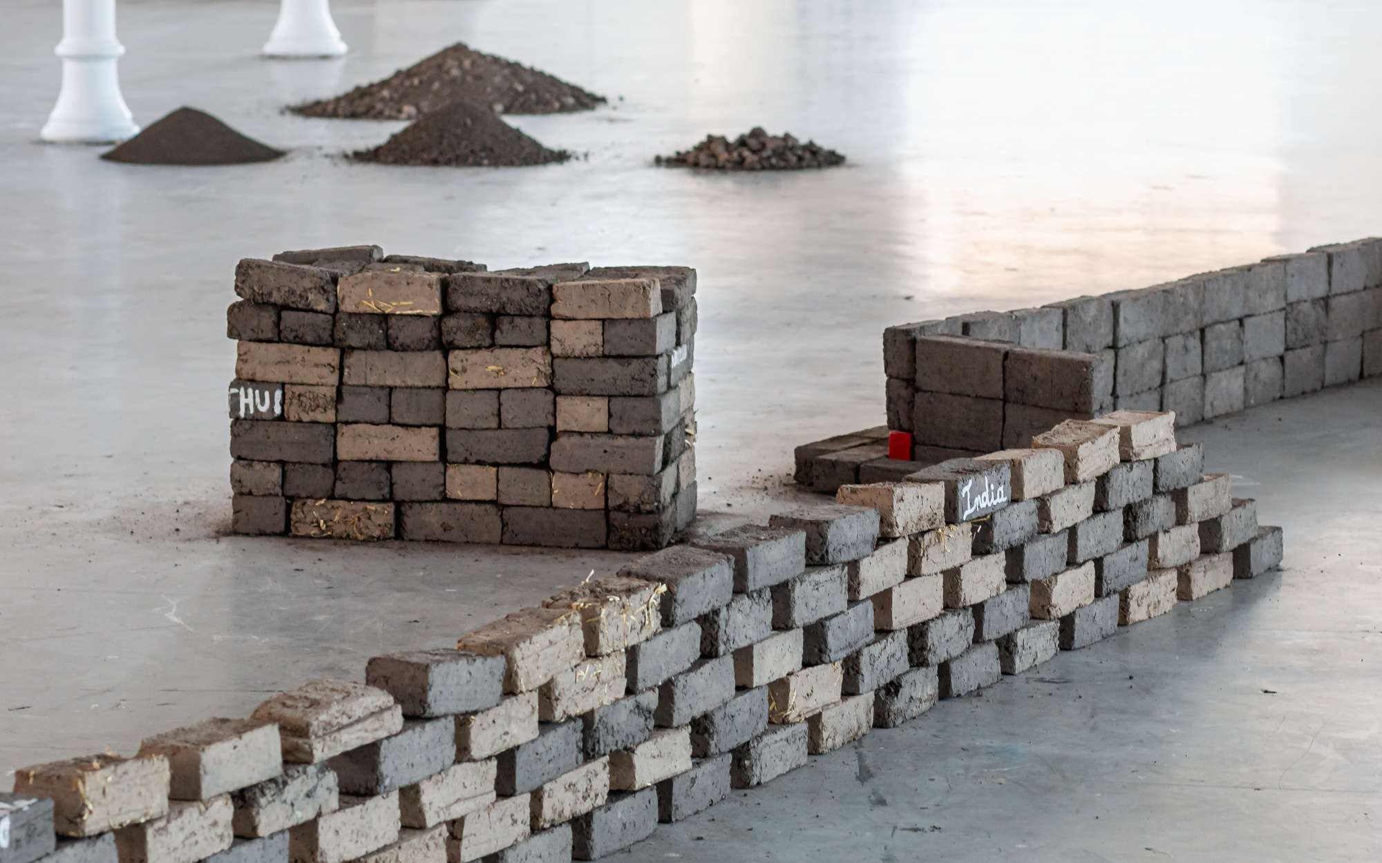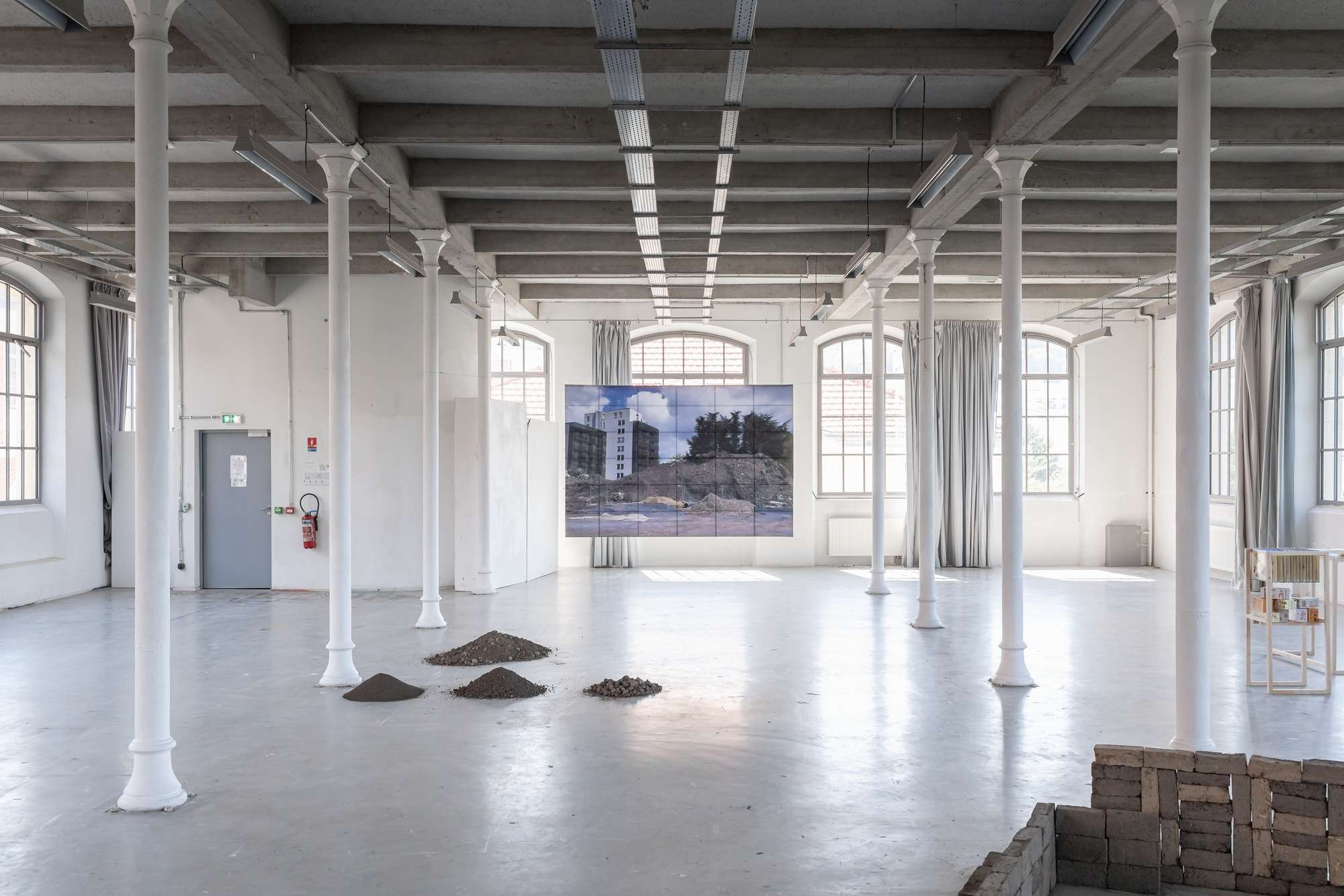500 briques en terre issues des excavations du quartier Manufacture à Saint-étienne ont été réalisées par 22 personnes. Cette terre a été déplacée au sein d’un atelier participatif de fabrication de briques. Nous avons mis 2 mois pour réaliser ces 500 briques. La terre a été mélangée avec de l’eau et pour certaines briques avec des liants naturels. Aucun autre ajout n’a été fait. Le temps va déliter les briques et elles pourront retourner au sein de leur site d’origine. La quantité de terre empruntée ne représente rien comparée à la quantité de terre excavée qui ont été déplacées pour construire et transformer ce quartier. La fabrication de ces 500 briques a donné une forme à cette terre inerte considérée comme un déchet.