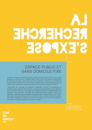 Le colloque-exposition La Recherche s'expose. Espace public et sans domicile fixe organisé par l'Université de Lyon-Université Jean Monnet, le Centre Max Weber et la Cité du design, s'intéresse au phénomène social du sans-abrisme, à partir d'un point de vue original (ce qui se traduit par l'articulation sans précédent d'un colloque et d'une exposition), puisqu'il s'agit de penser le phénomène comme un problème public et indissociablement comme un enjeu de recherche. Cette double manifestation a pour objectif de faire le point sur l'histoire et les actualités de la recherche autour du sans-abrisme, dans ses différentes articulations avec l'action publique et dans un contexte de fragile urbanité.