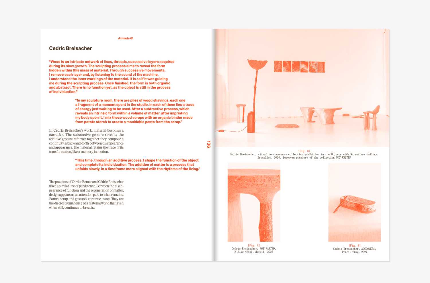 This issue is also a space for graphic experi- mentation. We welcome two graphic designers, Maxime Jambon-Michel and Sarah Not, who contributed to its design, exploring layout as a space for research. Here, the editorial form engages in a dialogue with the content: it organises, guides, and suggests interpretations, just as the objects themselves order, transform, and embody ways of living.