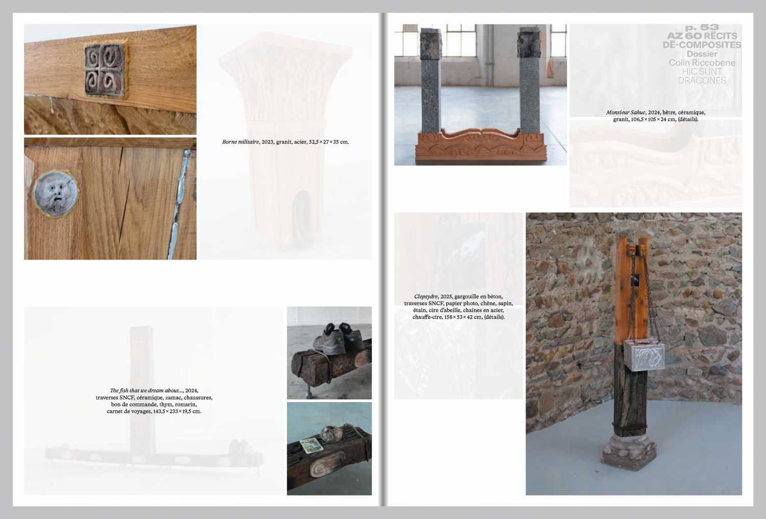 Colin Riccobene, artiste, qualifie sa méthode sculpturale de composite : revendiquant une pratique de l’itinérance, il prélève dans les espaces qu’il arpente des fragments matériels et mémoriels, qu’il vient ensuite lier (coller) selon leurs qualités plastiques, techniques ou même sentimentales.