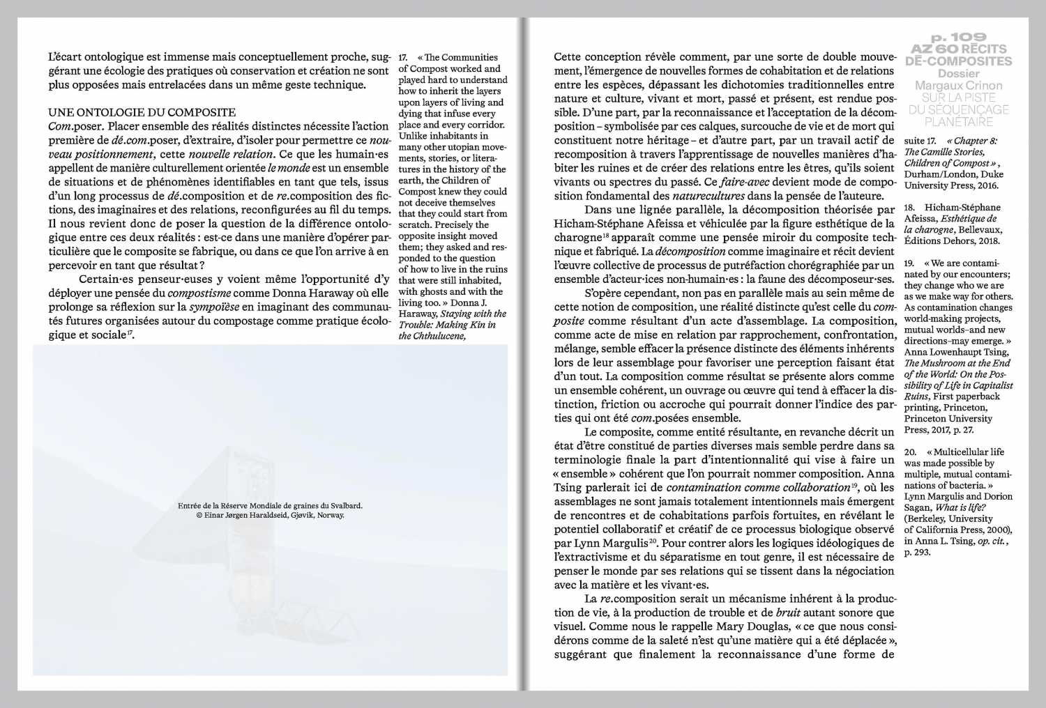 S’intéressant aux contributions qui explorent le composite comme formes d’art et de design, comme méthodologies et pratiques de recherche et/ou comme concepts théoriques, le numéro 60 de la revue Azimuts – Design Art Recherche propose d’appréhender le composite en tant que mode de présentation ou de représentation des réalités. Différentes hypothèses ont été explorées par les chercheur·euses et créateur·ices réuni·es ici.