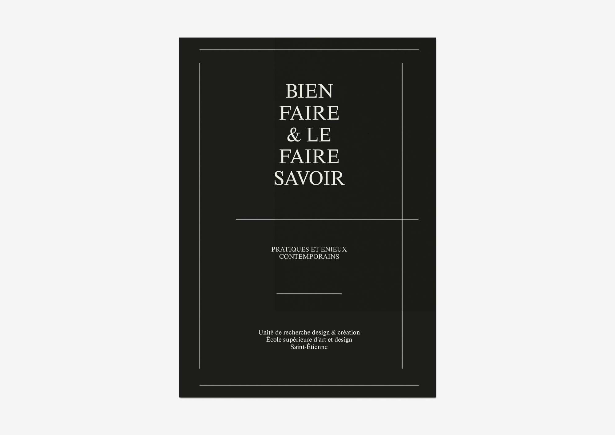 Avec cette publication, notamment en lien avec la conférence-exposition AD•Rec 2025, «Faire, encore», qui a eu lieu dans le cadre de la Biennale Internationale Design Saint-Étienne 2025, le Groupe de recherche en art et design (Grad) de l’École supérieure d’art et design de Saint-Étienne (Esadse) propose de réfléchir sur le «faire» en tant que méthodologie de la production des savoirs qui semble si spécifique aux écoles d’art et de design. Par le «Faire», nous entendons l’ensemble des formes pratiques reliant intentions, gestes, outils, langages, matériaux et savoir-faire. À partir des différentes thématiques portées par les équipes de recherche-création — Images-Récits-Documents (IRD), Laboratoire d’expérimentation des modernités (LEM), Random(lab), Labo d’Objet et Spacetelling —, cette publication vise à présenter des projets et des méthodes de recherche multiples : heuristiques, prospectifs, expérimentaux et sensibles.