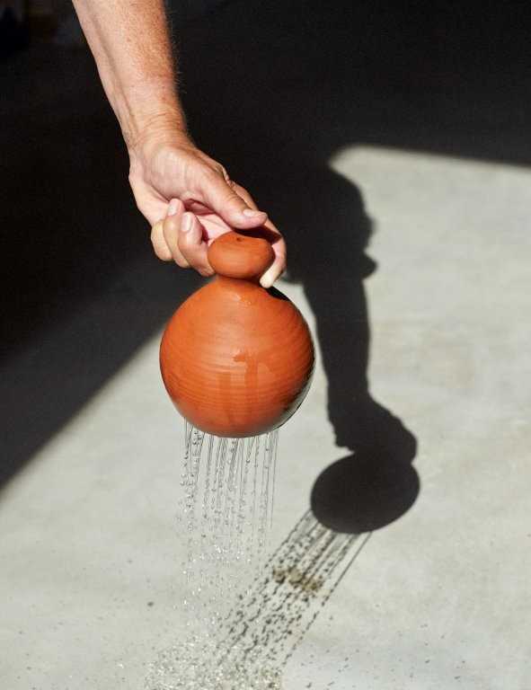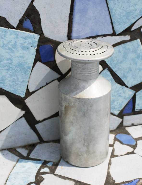 La technique du fluotournage consiste à déformer un métal en le « fluant » entre un mandrin et une ou plusieurs molettes de façon à obtenir des pièces en symétrie de révolution de très faible épaisseur. C’est grâce à cette technique, proche de celle du potier, qu’est fabriquée cette grande salière « poids plume ». On introduit le sel en dévissant son large bouchon semblable à un pommeau de douche, et on arrose son plat. Elle est souvent utilisée dans les baraques à frites, le sel pouvant être remplacé par du sucre pour les gaufres et les beignets.