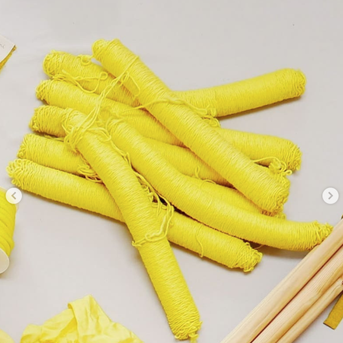 Lorsqu’elle s’installe à Saint-Étienne il y a 4 ans, Jeanne Goutelle s’étonne de ne pas trouver de structure liant les différentes personnes créatives qu’elle rencontre. Débarquant d’Angleterre, pays où les domaines du textile design, de l’art et de l’artisanat ne font qu’un, elle regrette qu’en France le design textile soit « considéré comme un parent pauvre ». C’est en 2020, lorsqu’elle rencontre Chloé Chagnaud (tisserande de La Tòrna) et Constanza Matteucci (graphiste et illustratrice) que son désir de fédération se concrétise : elles forment le collectif Fil Utile (FU), qui se développe rapidement et compte désormais 17 membres.
