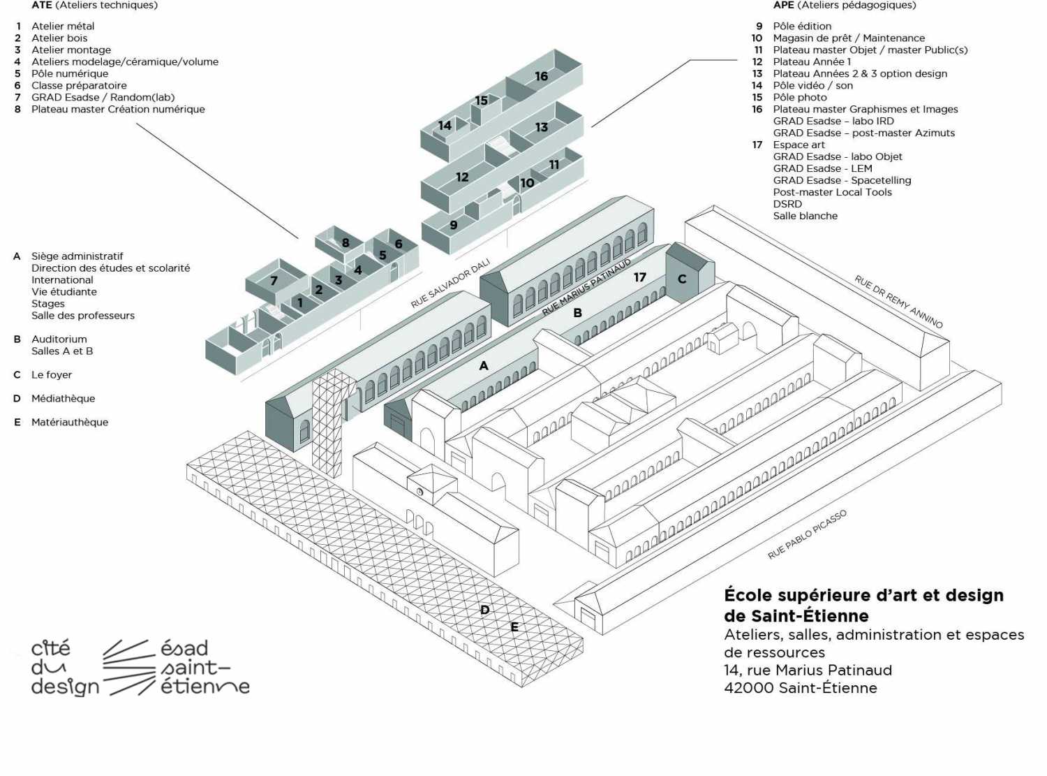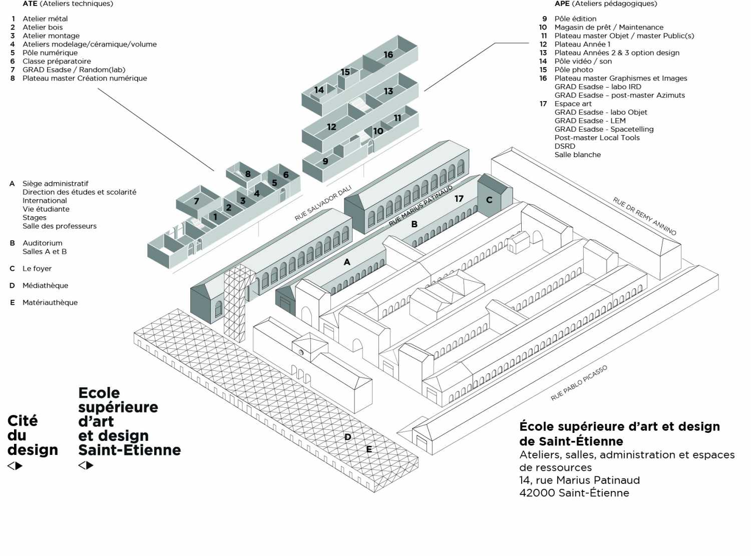 L’École supérieure d’art et design de Saint-Étienne (Ésad Saint-Étienne), établissement d’enseignement supérieur habilité par le ministère de la Culture, enseigne l’art et le design à près de 400 étudiants français et étrangers, de la classe préparatoire au troisième cycle, et prépare aux diplômes nationaux (DNA, DNSEP, post-master et doctorat). Sa pédagogie s’appuie sur des ateliers techniques bien dotés où se croisent pratiques artisanales et technologies de pointe, une formation centrée sur le projet tout en accordant une place à la théorie et à l’histoire, des enseignants professionnels dans le monde de l’art et du design, et enfin une recherche de pointe avec des laboratoires de recherche et des publications. Au cœur du quartier Cité du design, l’Ésad Saint-Étienne forme des designers et des artistes connectés aux enjeux du monde actuel.