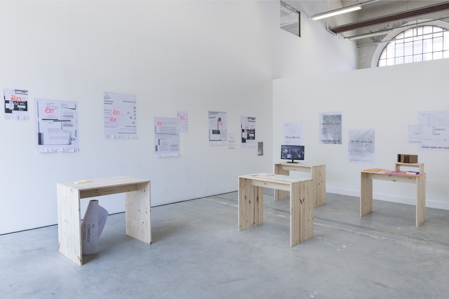 Après avoir travaillé sur la traduction et la capacité de ce procédé à créer une seconde oeuvre à partir d'une oeuvre déjà réalisée, j'ai co-créé avec Suzanne Moreau une plateforme radiophonique appelée Radio Èin. Elle est un lieu d'exposition, par la diffusion sur le web, de pièces sonores à durée variable. Celles-ci sont réalisées par notre binôme, en direct avec, ou non, de la matière pré-existante appartenant au champ des arts ainsi que des intervenants qui se greffent parfois à un projet. Chaque pièce est de l'ordre de l'événement performatif puisqu'elle n'a lieu qu'une fois à une date et heure données et n'est pas rediffusée.