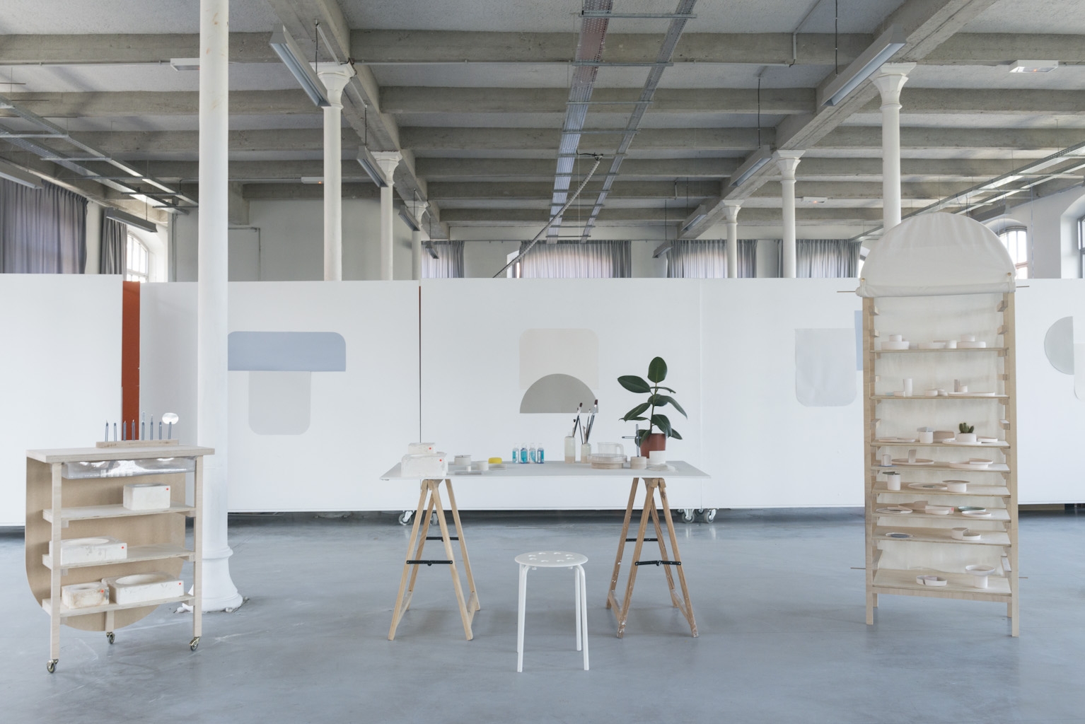 En parallèle de ma production, j'ai aussi voulu penser un espace de travail pour contenir tout ce processus, avec un rangement rationnel ; sous forme de desserte, pour qu'il puisse s'adapter à n'importe quel espace de travail.
