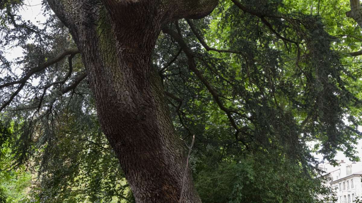 Une brèche pour aller et venir dans ce jardin public.