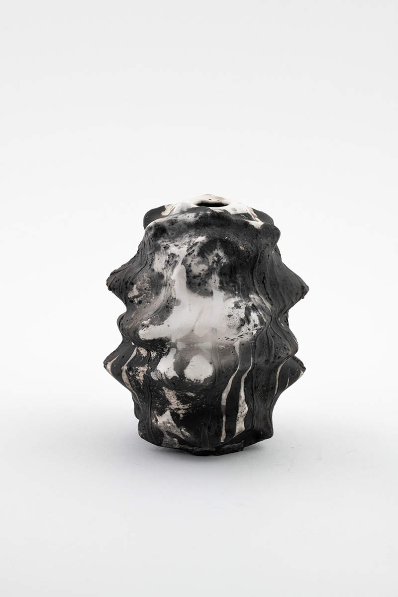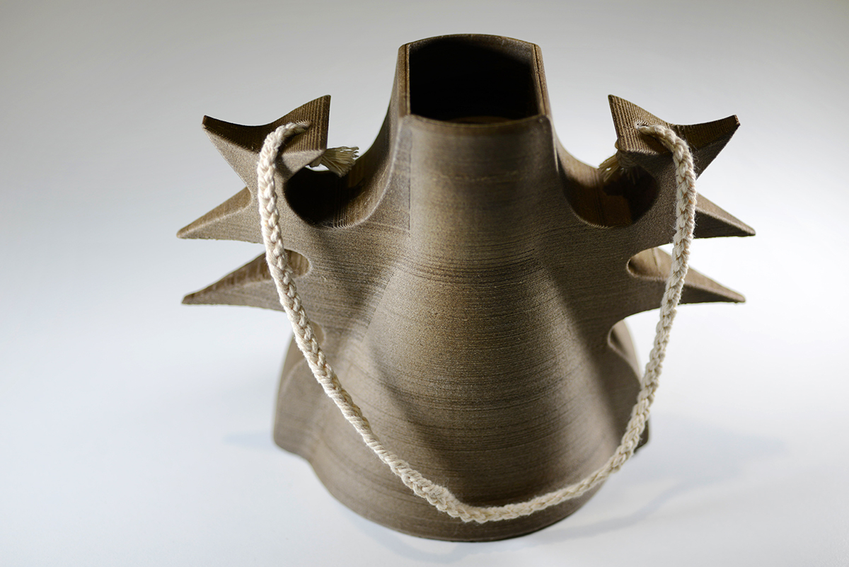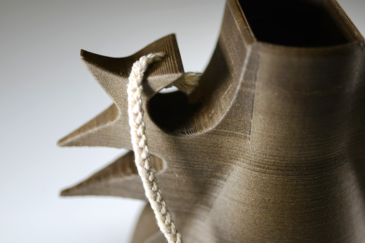 All vases are created initially on modeling software. Specific algorithms spiralize the initial shape to create a complex symmetry that cannot be reproduced by working manually with ceramics.