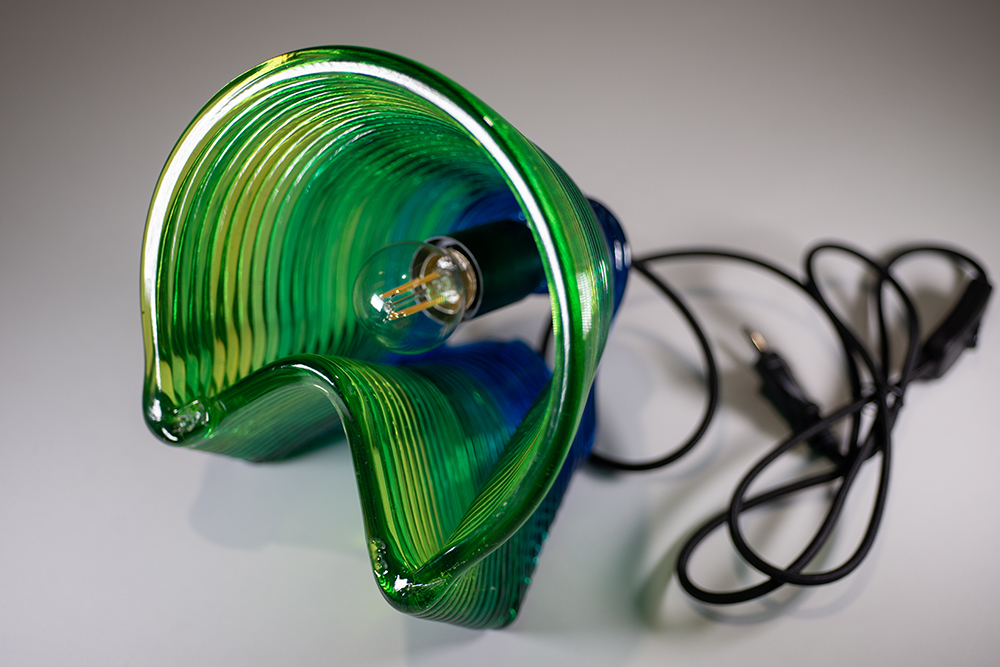 Hand-formed, cane-blown glass, colored glass included.